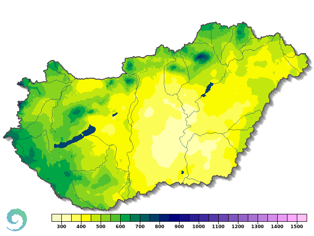 A 2025. évi csapadékösszeg (homogenizált, interpolált adatok alapján)