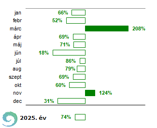 2025-ben az országos évi csapadékösszeg 453,3 mm volt, mely az 1991-2020-as sokévi átlag 74%-a (8. ábra), s ezzel a 4. legszárazabb lett 1901 óta. Az év mintegy felében a havi csapadékösszegek legalább 30%-kal elmaradtak az 1991-2020-as normáltól. Szárazan indult az év, januárban a csapadék harmada, míg februárban a fele hiányzott. Ezt követően márciusban az ilyenkor megszokott összegnek a kétszerese hullott, ezzel a 8. legcsapadékosabb március lett az elmúlt 125 évben. Szárazon folytatódott a tavasz, áprilisban és májusban is hiányzott a csapadék körülbelül 30%-a. Majd a XX. század kezdete óta legszárazabb júniusban volt részünk, amikor a normálnak mindössze 18%-a érkezett. Júliusban és augusztusban, noha kisebb mértékű volt a hiány, de tovább súlyosbította a már kialakult aszályhelyzetet. Száraz volt az ősz első két hónapja is, ekkor 30-40%-kal kevesebb csapadék érkezett. Ezt a hosszú száraz időszakot egy kissé csapadékosabb október követte, negyedével hullott több a szokásos értéknél. A december ismét jóval szárazabbnak bizonyult a vártnál, hiányzott a normál 69%-a, így a 10. legszárazabb december lett 1901 óta. Az év legnagyobb napi csapadékösszege 184 mm volt, amit július 27-én Csököly állomáson regisztráltunk.