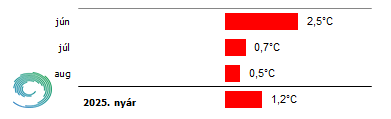 A 2025-ös nyár középhőmérsékletének eltérése a sokévi átlagtól