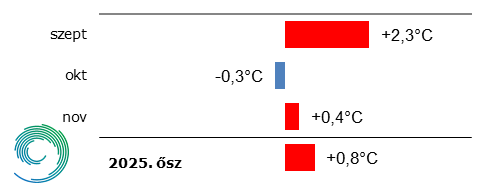 A 2025-ös ősz középhőmérsékletének eltérése a sokévi átlagtól
