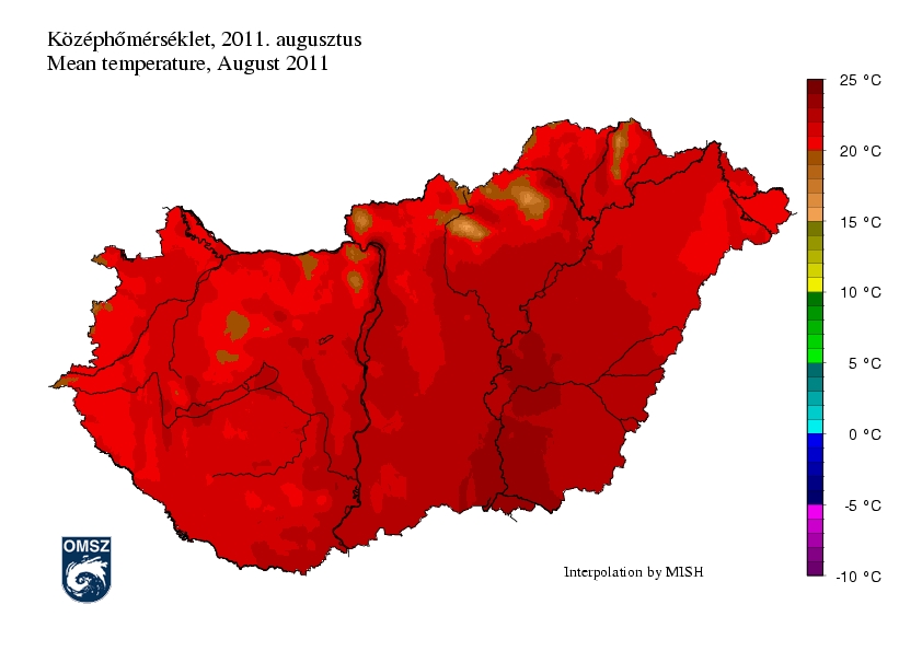 Országszerte melegebb volt az idei augusztus, a sokéves átlaghoz képest a különbség mindenütt meghaladta a +0,5 °C-ot. A szokásoshoz képest legmelegebb terület a Tisza mentén rajzolódott ki, itt az anomália +2 °C-nál is nagyobb volt, és rendhagyó maximum jelent meg a Bükk térségében +3 °C-os eltéréssel.